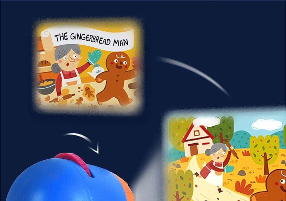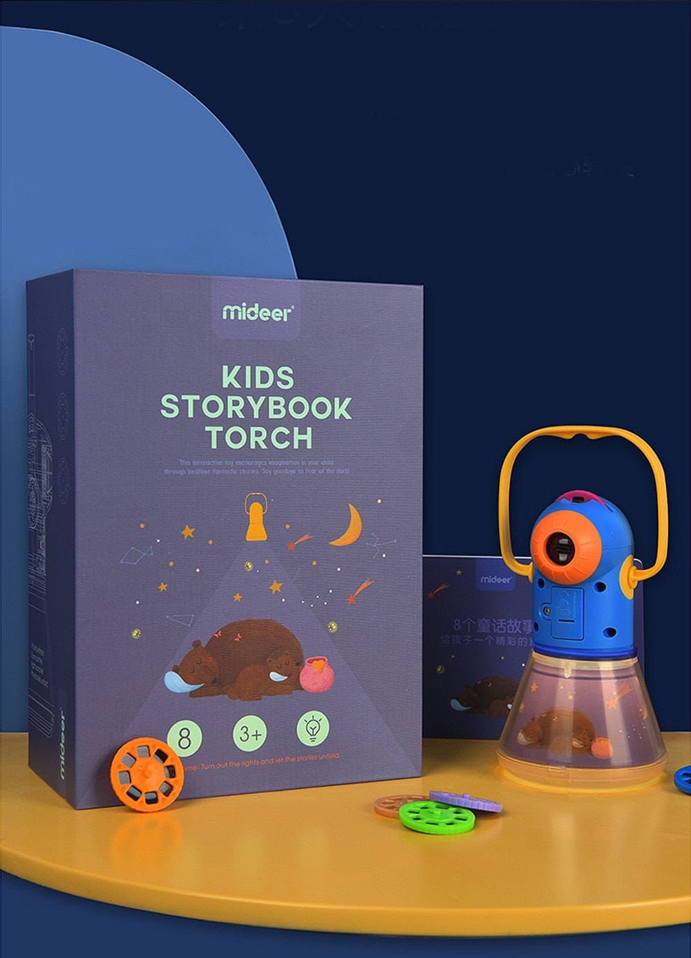 Linda Luminária e Projetor de Histórias Infantis para fazer com que a imaginação do seu filho se divirta com várias histórias.